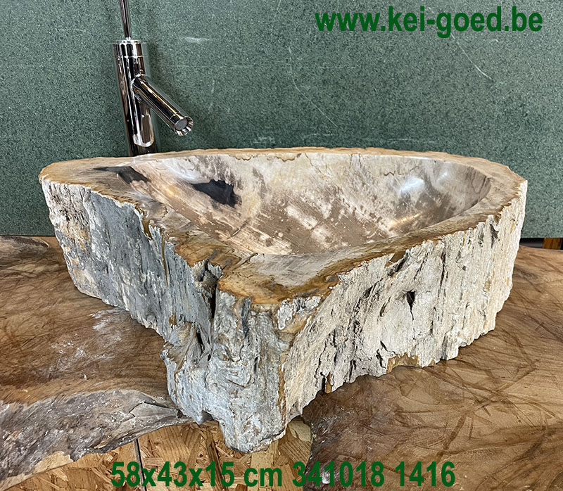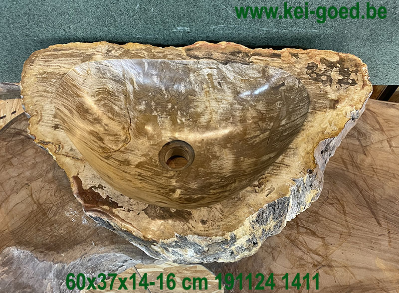Duo, set wasbakken van versteend hout, een wonder van de natuur in uw badkamer. Het recht aan een kant geslepen om deze bak in strak tegen de wand te kunnen plaatsen. Is gedaan door vakkundige steen bewerkers. Eindelijk een opbouw lavabo die anders is dan al die andere die alle honderdduizend dezelfde kleur maat en vorm hebben. Dat gaat met deze keien van een kei harde fossiel niet op. Versteend hout daar worden ook andere producten van gemaakt, zoals beelden. Die u ook op onze site kunt vinden. Vele fossielen, vulkaanuitbarstingen, aardverschuivingen kunnen deze stenen vrij komen. Maar de meeste stukken versteend boom worden vaak diep in de grond gevonden. Het wordt ook meer en meer moeilijker dit materiaal te delven. Versteend hout wordt meestal in onherbergzame gebieden gevonden die erg moeilijk zijn te bereiken. Er is veel mankracht nodig om deze zeer zware fossielen, die overal in de Jungle verspreid te vinden zijn, te bergen.