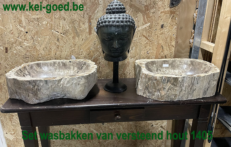 Duo set waskommen van versteend hout 122924