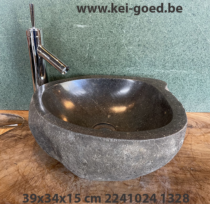Rivierstenen waskom voor de badkamer. Deze past zeer goed in het huidige interieur beeld, eigentijds en duurzaam. Gelukkig maar een opbouw waskom die totaal anders is dan al die andere die alle honderdduizend dezelfde kleur, maat en vorm hebben. Elke steen is echt anders, deze zijn zoals wij door de natuur en tijd gevormd. Het zijn keien die door erupties, vulkaanuitbarstingen, aardverschuivingen vrij zijn gekomen. Door de miljoenen jaren gevormd door de eeuwig durende beweging van onze lieve aarde. En het eeuwig stromende en schurende water. De meeste stenen worden gevonden in de rivieren waar er vele van zijn overal ter wereld. Maar niet alle stenen zijn geschikt om er een gebruiksvoorwerp van te maken, de kei die wij vinden wel. Deze zijn van een graniet soort, erg hard en zeer vast van materiaal. Bewerkt door professionals met de hand uitgeslepen en eindeloos geschuurd. Daarna gepolijst tot de binnenkant zo glad is als een spiegelwand.