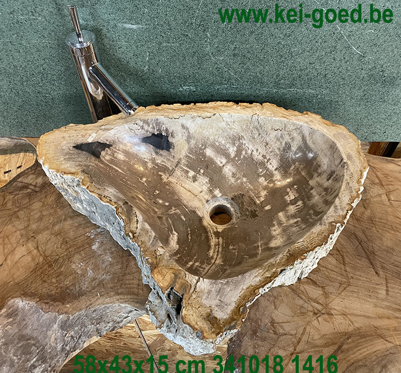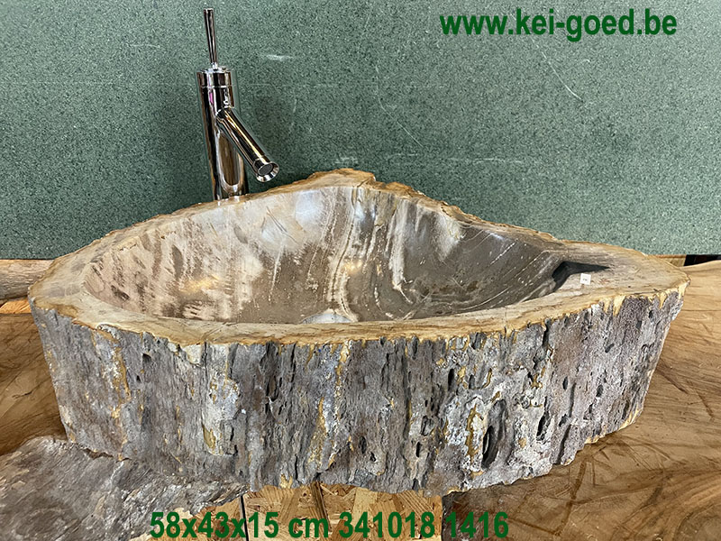 Wastafel van versteende boomstam