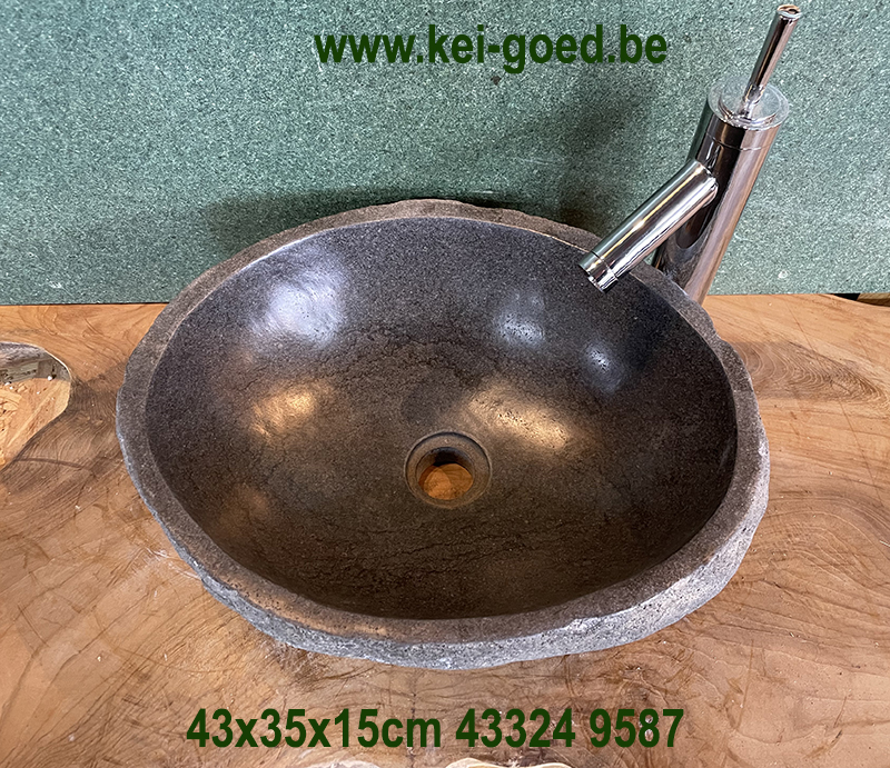 Lavabo rivière évier en pierre is een rivier kei gevormd door de natuur door de constante beweging van de aarde.En het schuren van het aldoor stromende water onder op en door onze aarde. De natuur heeft er miljoenen jaren over gedaan om deze keien zo te vormen. Alleen de harde kern is overgebleven een granieten kei. Kei hard en kei-goed. Zoeken en verzamelen is zwaar werk we vinden deze in de meest onherbergzame gebieden hoog in de bergen en jungle. Waar de rivieren in de zomertijd vaak droog staan, en tijdens de moesson het water van de tropische regen met grote kracht en snelheid naar beneden raast, richting zee. Eindelijk een opbouw waskom die anders is dan al die andere die alle honderdduizend dezelfde kleur maat en vorm hebben. Dat gaat met deze keien van een harde graniet soort niet op. Elke steen is echt anders deze zijn zoals wij door de natuur en tijd gevormd. Het zijn keien die door erupties vulkaanuitbarstingen aardverschuivingen vrij zijn gekomen.