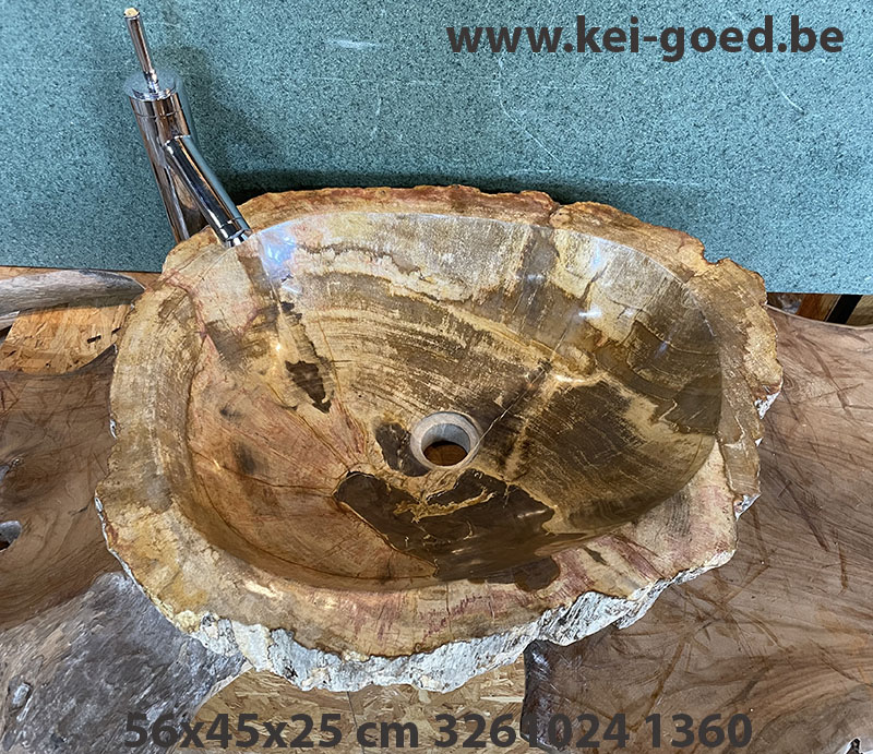 Versteend hout natuurlijke schoonheid puur natuur en zeldzaam, daarvan een waskom.